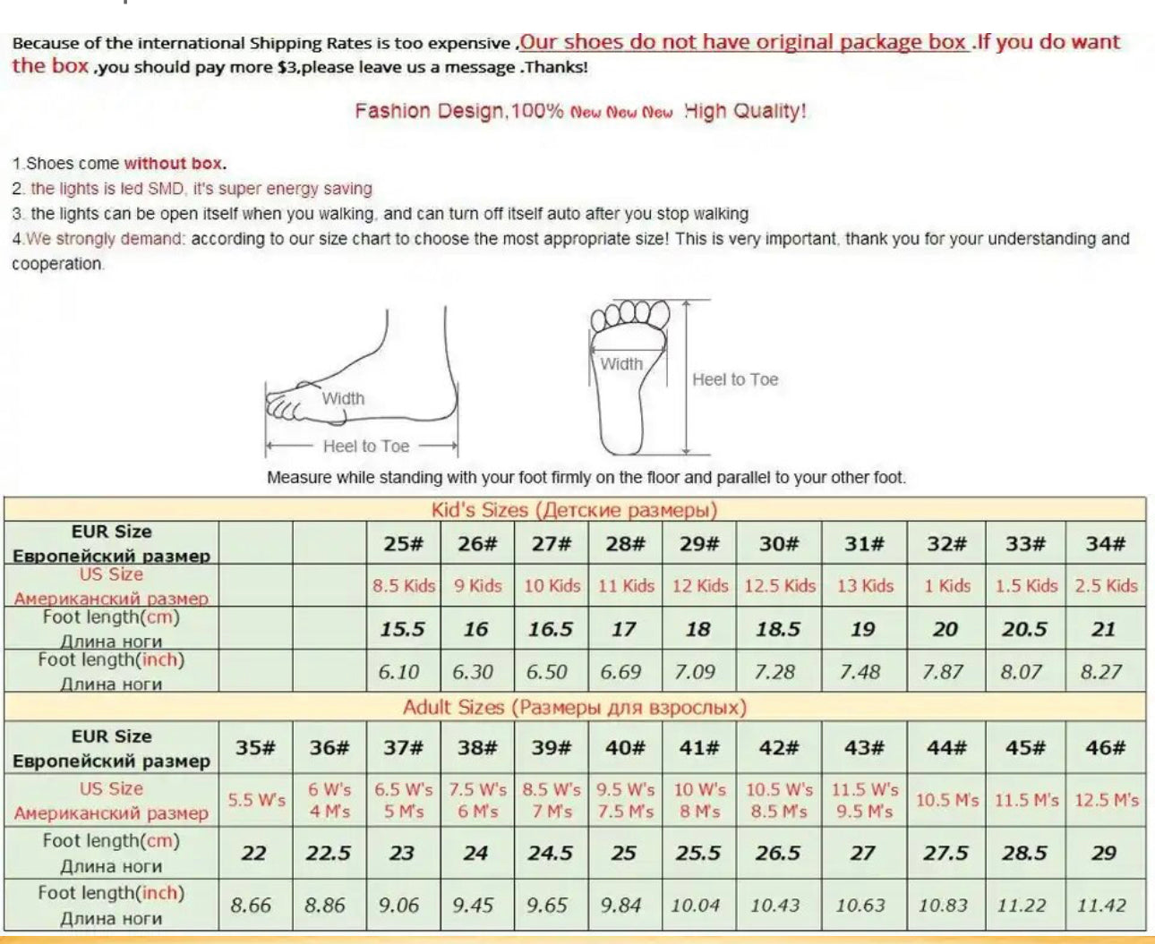 This LED Light Sneaker is perfect for adding a touch of brilliance to your night out and expressing your unique style. Embrace the intersection of fashion and technology and also make a bold statement wherever you go. Let your footwear light up the path to individuality and style.