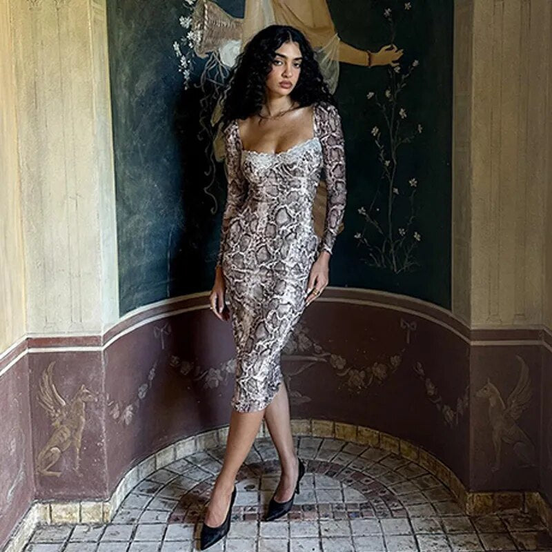 Pink Lace Dress Women Fashion Lace Patchwork Print Dress Sexy Backless Drawstring Tie Bodycon Long Robes Elegant Ladies Evening Party